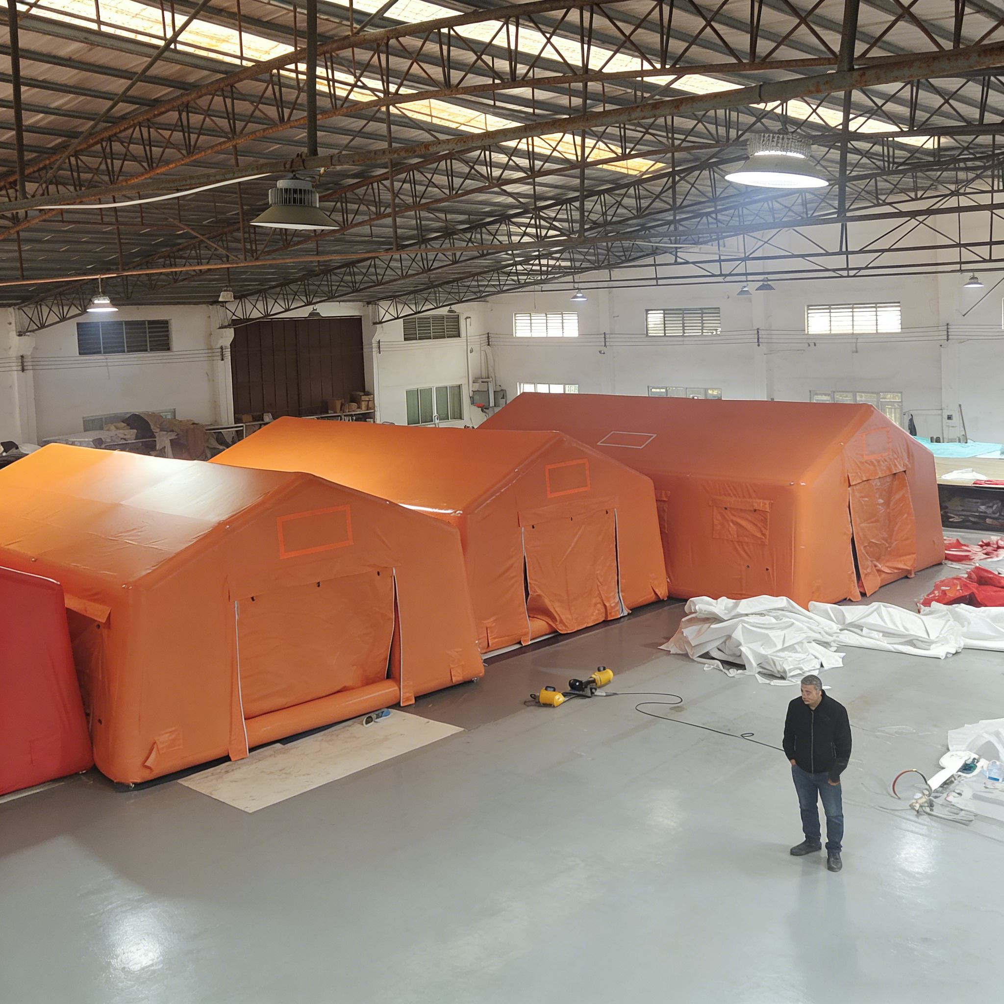 We produce a wide range of premium large-scale inflatable tent, providing versatile solutions for outdoor gatherings, emergency shelters, and trade show exhibitions.,The music festival featured a large inflatable tent that could accommodate over 5,000 guests,Relief organizations quickly set up large inflatable shelters after the earthquake.